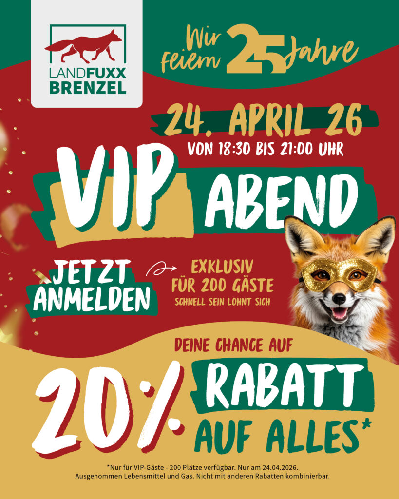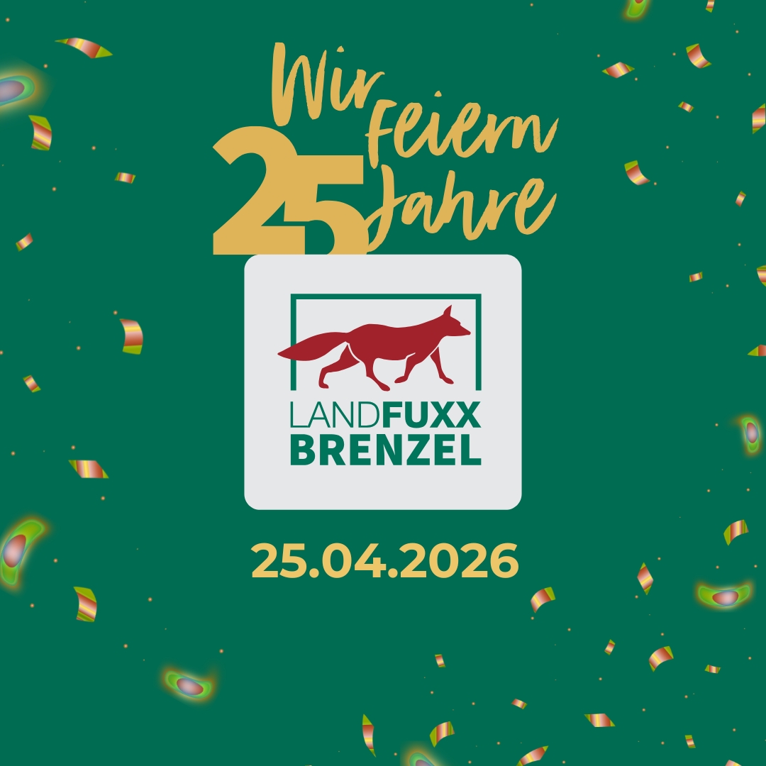 Freuen Sie sich auf unsere große Jubiläumsfeier am Samstag, den 25. April 2026, mit vielen Highlights, Aktionen und besonderen Momenten beim LANDFUXX Brenzel.